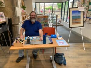 Artist Keith Parkinson was on hand to talk to visitors about the inspiration for his exhibition ‘Environments’ which began with an Ordnance Survey Map!